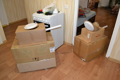 Если кто-то еще сомневается, что картонные коробки - это чудо, то я сейчас постараюсь все сомнения развеять. У нас очередная порция игр с этим упаковочным материалом. Итак, пойдем по порядку. Дело в том, что сейчас у нас каждый день что-то новенькое с коробками происходит. Например, несколько дней назад мы вырезали из картона два манекена.
