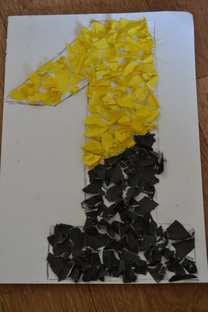 Первый день творения решили воплотить в аппликации. Для этого мальчики нарвали черную и желтую бумагу.